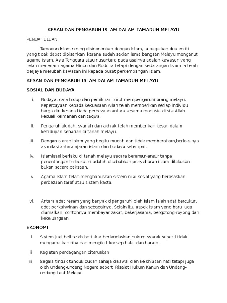 Kesan Islam Terhadap Tamadun Melayu Pdf Document